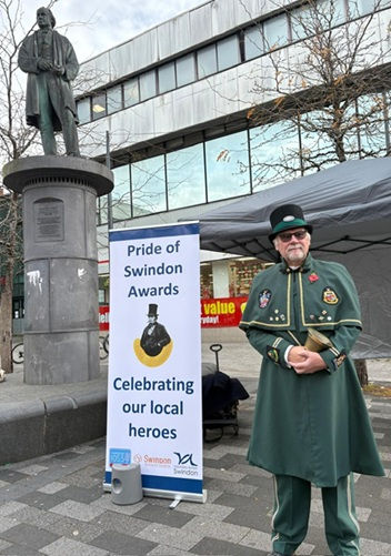 Swindon Town Crier Rob Hardy takes up his post in stye - and helps launch Swindon's 2025/26 Pride Of Swindon Awards.